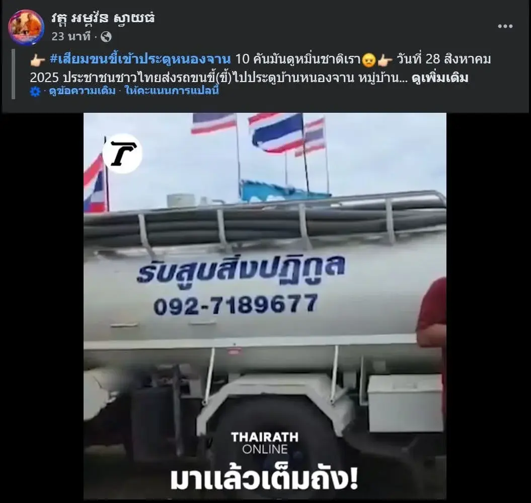 ล่าสุด พระเขมรไม่พอใจรถดูดส้วมไทยจอดสแตนบาย บ้านหนองจาน ชี้หมิ่นชาติเขมร
