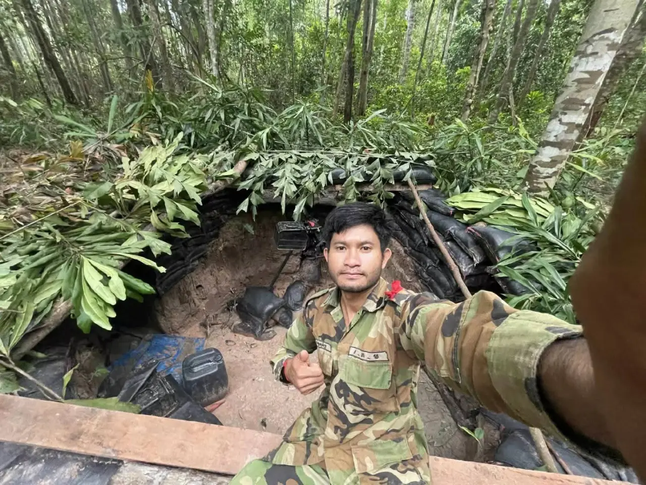 ทหารเขมรเซลฟี่ รีวิวบังเกอร์ตัวเองพร้อมแคปชั่น "เข้ามาได้ทุกเวลาเสียม"