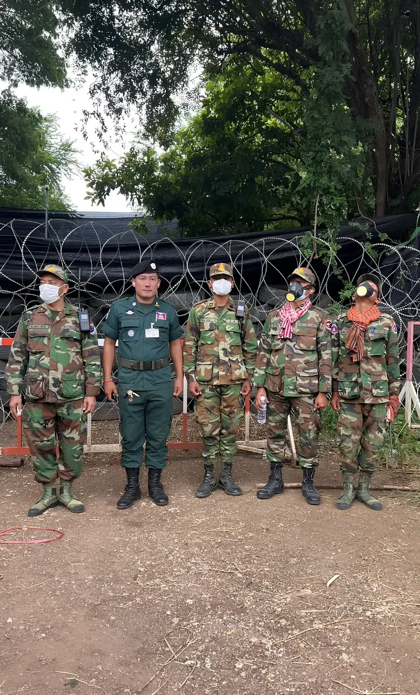 ทหารเขมรเพื่อป้องกันควันพิษจากทางฝ่ายไทย บริเวณรั้วลวดหนามบ้านหนองจาน ซึ่งหากไทยได้มีการโจมตีด้วยควันพิษจริงนั้นคงไม่วายที่ตำรวจตระเวนชายแดนของเขมรจะเสียชีวิตไปแล้วเพราะว่าไม่ได้ใส่หน้ากากป้องกันพิษเหมือนกับทหารเขมร