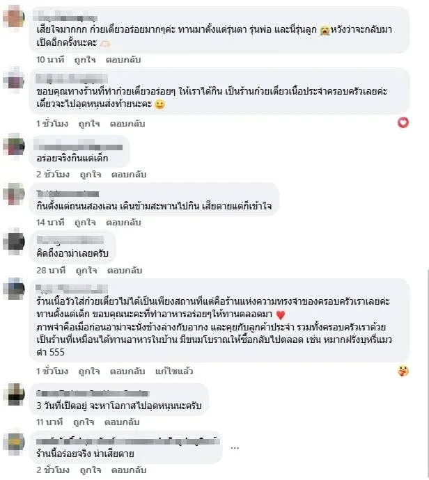 ข้อความนี้สะท้อนถึงความเสียใจของครอบครัวที่ต้อง ลาจากลูกค้าผู้รักร้านก๋วยเตี๋ยวเนื้อมาอย่างยาวนาน