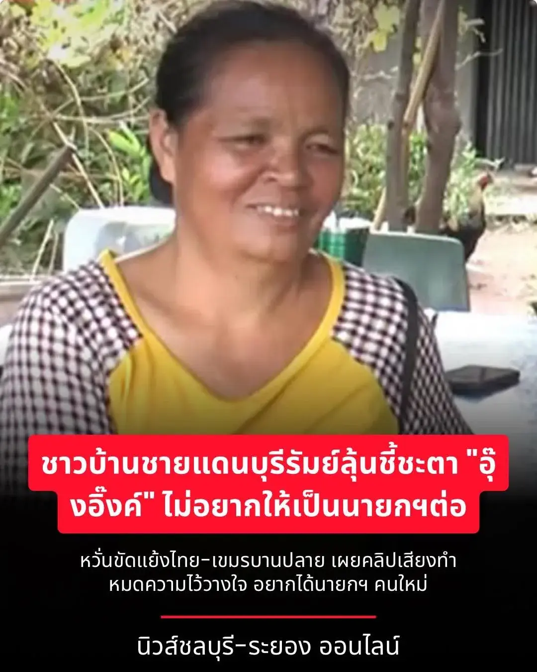 ชาวบ้านชายแดนบุรีรัมย์ลุ้นชี้ชะตา "อุ๊งอิ๊งค์" ไม่อยากให้เป็นนายกฯต่อ หวั่นขัดแย้งไทย-เขมรบานปลาย เผยคลิปเสียงทำหมดความไว้วางใจ อยากได้นายกฯ คนใหม่