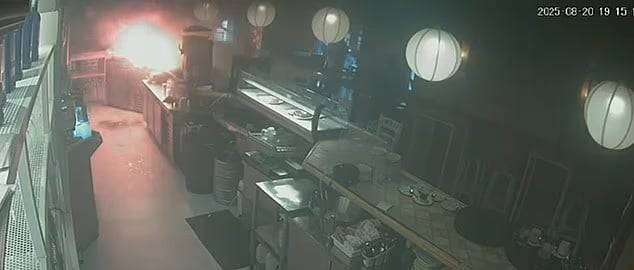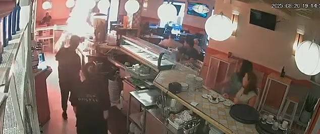 จากภาพกล้องวงจรปิดภายในร้าน แสดงให้เห็นวินาทีที่ไฟลุกพรึ่บขึ้นมาท่ามกลางความตกใจของลูกค้าและพนักงานที่อยู่ในร้าน หลายคนรีบวิ่งหนีเอาชีวิตรอด ขณะที่พนักงานบางคนพยายามคว้าถังดับเพลิงมาฉีดเพื่อสกัดเพลิงที่กำลังลุกลาม