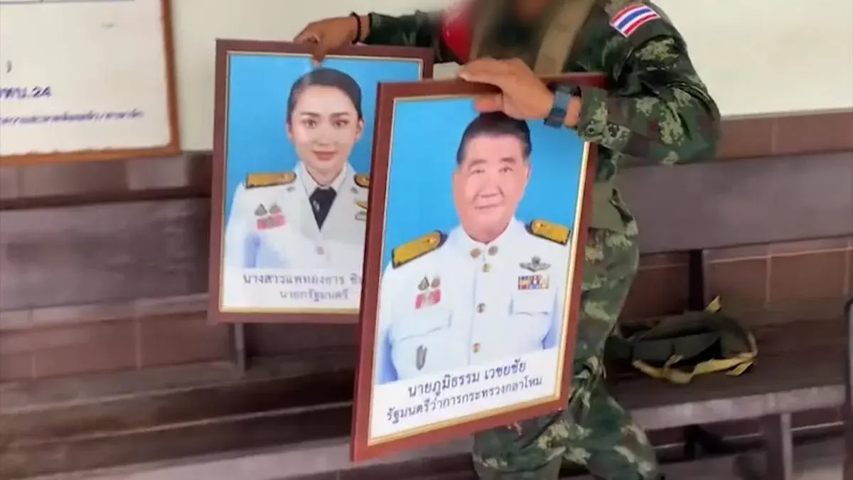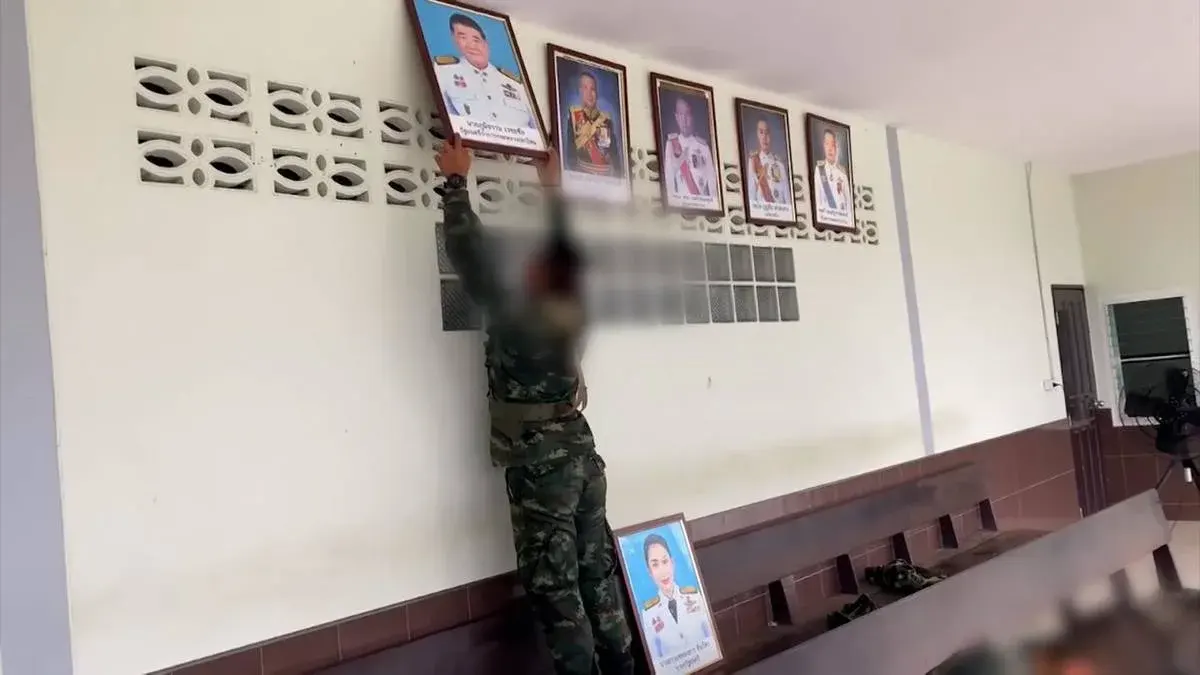 คลิปวิดีโอดังกล่าวเผยให้เห็น ทหารหน่วยหนึ่ง ปลดรูปของ น.ส.แพทองธาร ชินวัตร นายกรัฐมนตรี และ นายภูมิธรรม เวชยชัย อดีตรัฐมนตรีว่าการกระทรวงกลาโหม พร้อมตำแหน่งทางราชการ ออกจากผนัง “ผู้บังคับบัญชา” ตามลำดับขั้นชั้นอย่างเป็นระเบียบเรียบร้อย