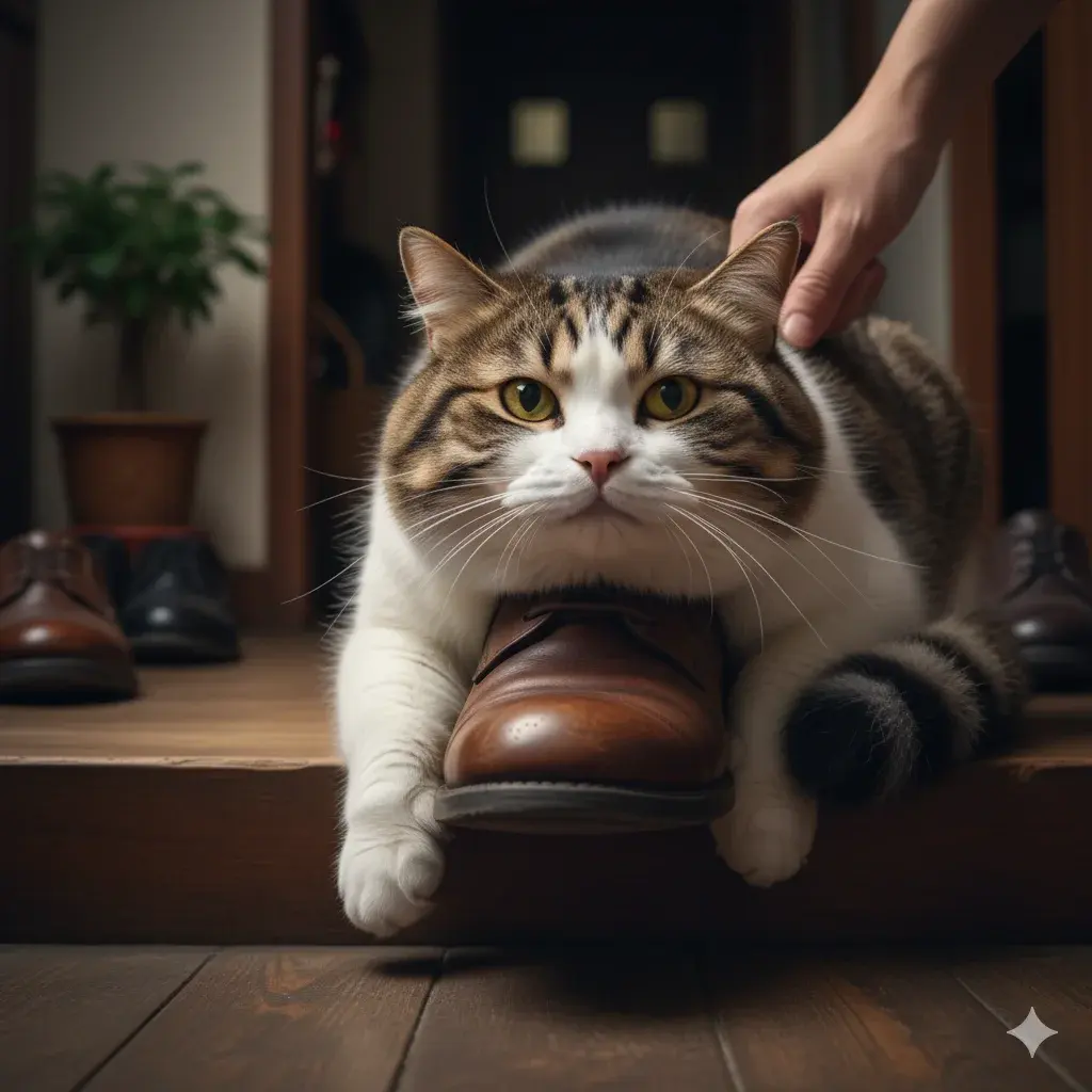 เจ้าของคลิปผู้ใช้บัญชี "三色にゃんこ" บนแพลตฟอร์ม X (ชื่อเดิม Twitter) ได้แชร์ภาพความน่ารักของ "เหมียวเหมียว" (にゃにゃ) แมวเพศผู้อายุ 10 ปี ซึ่งเป็นแมวลายสลิดขาว กำลังใช้เวลาช่วงที่ครอบครัวกำลังพูดคุยกันในห้องนั่งเล่น แอบย่องไปที่บริเวณโถงทางเข้าบ้าน และเลือก "เป้าหมาย" เป็นรองเท้าหนังของว่าที่น้องเขยของเธอ