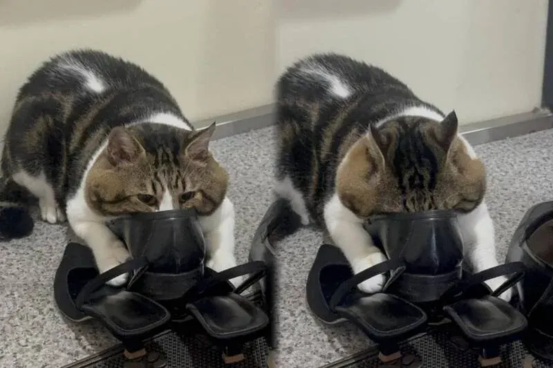 จากภาพวิดีโอที่ปรากฏ จะเห็นว่า "เหมียวเหมียว" พยายามเอาใบหน้ากลมโตของมัน ยัดเข้าไปในรองเท้าที่ค่อนข้างแคบ เพื่อสูดดมกลิ่นภายในอย่างเต็มที่ โดยมีเพียงดวงตาและส่วนอื่นๆ โผล่ออกมาให้เห็น