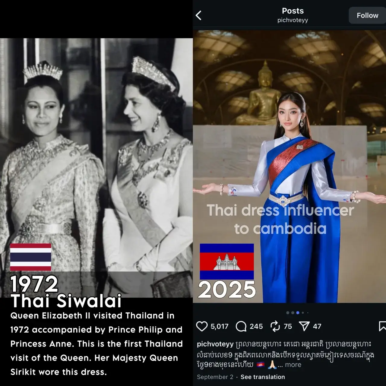 สิ่งที่ตลกร้ายก็คือ ฝั่งกัมพูชามักจะบอกว่า เป็นชุดของตัวเอง หรืออ้างว่าเป็นรากเหง้าทางวัฒนธรรม ทั้งที่ความจริงชุดไทยมีความประณีตและพัฒนารูปแบบจากราชสำนักไทยมาอย่างยาวนาน สะท้อนภูมิปัญญาและเอกลักษณ์ที่แตกต่างชัดเจน