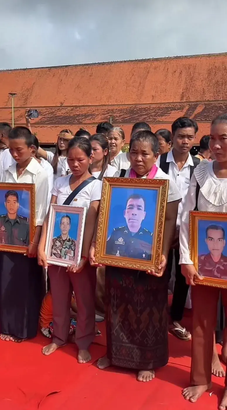 ชาวกัมพูชาถือรูปภาพทหารเสียชีวิตเลียนแบบไทย ร้องห่มร้องไห้ว่าไทยโจมตีทหารเหล่านี้เสียชีวิตลุกล้ำพื้นที่อธิปไตยของกัมพูชา