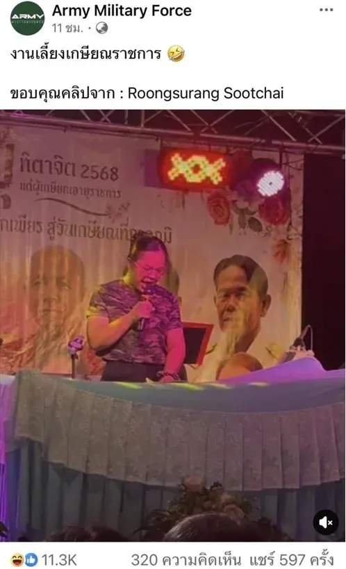 ทางเพจดังอย่าง "Army Military Force" ได้มีการโพสต์แชร์คลิปวิดีโอ ซึ่งเป็นบรรยากาศภายในงานเกษียณอายุราชการแห่งหนึ่ง โดยภายในคลิปดังกล่าว ได้มีการแสดงล้อเลียนบุคคลสำคัญของกัมพูชาตอนนี้ ซึ่งก็ไม่ใช่ใครที่ไหน สาวเขมรที่โกหกเป็นอาชีพนั้นก็คือ พลโทหญิง มาลี โสเจียตา รองเลขาธิการแห่งรัฐ และโฆษกหลักของกระทรวงกลาโหมกัมพูชา ทั้งนี้ทางผู้แสดงหญิงได้ลอกเลียนแบบท่าทางและสำเนียงการพูดมาอย่างละเอียด สร้างความขำขัน และเรียกเสียงหัวเราะพร้อมรอยยิ้มให้แก่บรรดาผู้ร่วมงานเป็นอย่างมาก