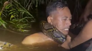 คลิปนาทีชีวิต! งูหลามยักษ์ยาว 6 เมตรลากไกด์ชาวอินโดนีเซียลงไปใต้น้ำ แต่โชคดีที่เพื่อนช่วยทันเวลา