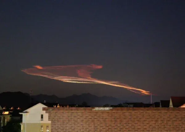แต่ผู้เชี่ยวชาญด้านอวกาศ กล่าวว่า "ปรากฏการณ์ประหลาดนี้ เป็นผลมาจากการปล่อยจรวด Kuaizhou-1A โดยศูนย์ปล่อยดาวเทียมไทหยวน ได้ปล่อยจรวดในวันเดียวกัน โดยจรวดลำนี้กำลังปฏิบัติภารกิจปล่อยดาวเทียม 2 ดวง" และ "เมื่อเข้าสู่ชั้นบรรยากาศสตราโตสเฟียร์ ก๊าซไอเสียซึ่งประกอบด้วยไอน้ำ อะลูมิเนียมออกไซด์ และ อนุภาคของแข็งอื่นๆ จะเย็นตัวลงและควบแน่น ก่อตัวเป็นผลึกน้ำแข็งหรือละอองลอย เมื่อแสงอาทิตย์ส่องผ่านผลึกเหล่านี้ จะเกิดการกระเจิงและการเลี้ยวเบน ทำให้แถบแสงสว่างจ้าและเปลี่ยนสีจากสีแดง เหลือง เป็นสีน้ำเงิน และส้ม"