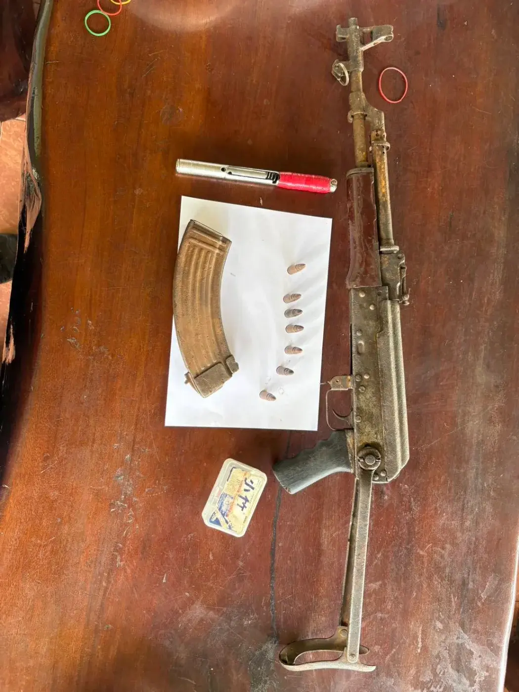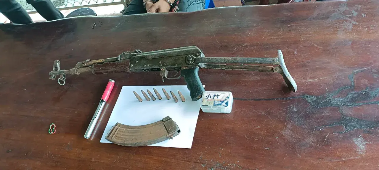 จากการเข้าตรวจค้น เจ้าหน้าที่สามารถจับกุม นายทัตพงศ์ หรือ “เขต” เพชรลูก อายุ 21 ปี ชาวเหนือคลอง พร้อมของกลางหลายรายการ ได้แก่ ยาบ้า 1 เม็ด ซุกซ่อนในกระปุกหัวเตียง อาวุธปืนสงคราม AK-47 (อาก้า) 1 กระบอก ลำกล้องยาว 14 นิ้ว