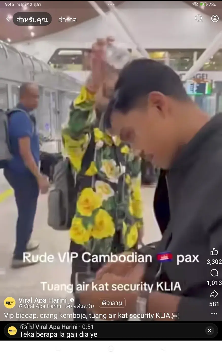 ชายชาวกัมพูชารายนี้ยอมรับผิดในชั้นศาลในข้อหาใช้คำพูดหยาบคายต่อพนักงานต้อนรับบนเครื่องบินระหว่างเที่ยวบินและกระทำการข่มขู่ทางอาญาต่อเจ้าหน้าที่รักษาความปลอดภัยที่ท่าอากาศยานนานาชาติกัวลาลัมเปอร์ (KLIA) ด้วยการเทน้ำดื่มจากขวด ราดศรีษะเจ้าหน้าที่