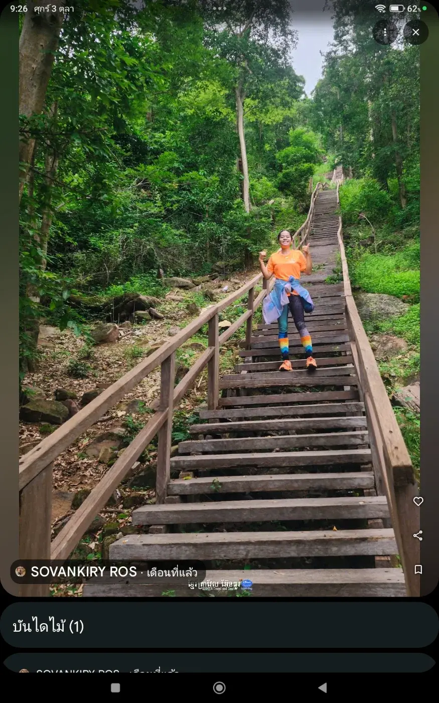 เพจเฟซบุ๊ก Thai Burma railway ระบุอีกว่า ภาพถ่ายของฝั่งกัมพูชาตอนที่เปิดให้คนเข้าชม มีการปักป้ายระวังทุ่นระเบิดภาษาเขมรอยู่