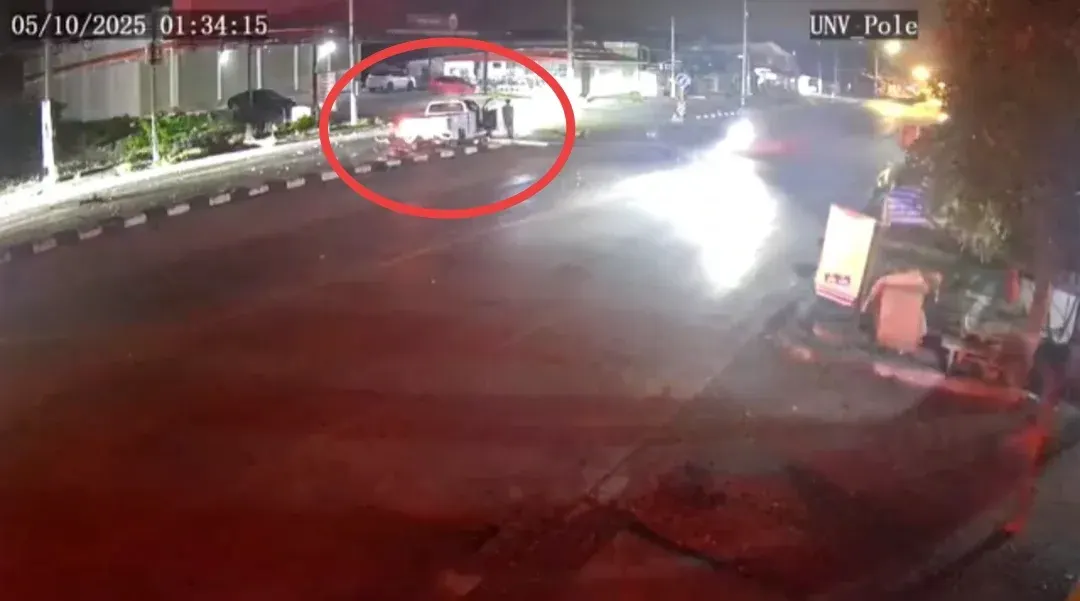 ผู้สื่อข่าวรายงานว่า เมื่อเวลาประมาณ 01.35 น.วันที่ 5 ตุลาคม 2568 ตำรวจ สภ.พระพรหม จ.นครศรีธรรมราช รับแจ้งอุบัติเหตุรถกระบะเสียหลักชนเสาไฟฟ้าเกาะกลางถนน ใกล้สี่แยกนาพรุ ต.นาพรุ อ.พระพรหม จึงรีบเดินทางไปตรวจสอบ