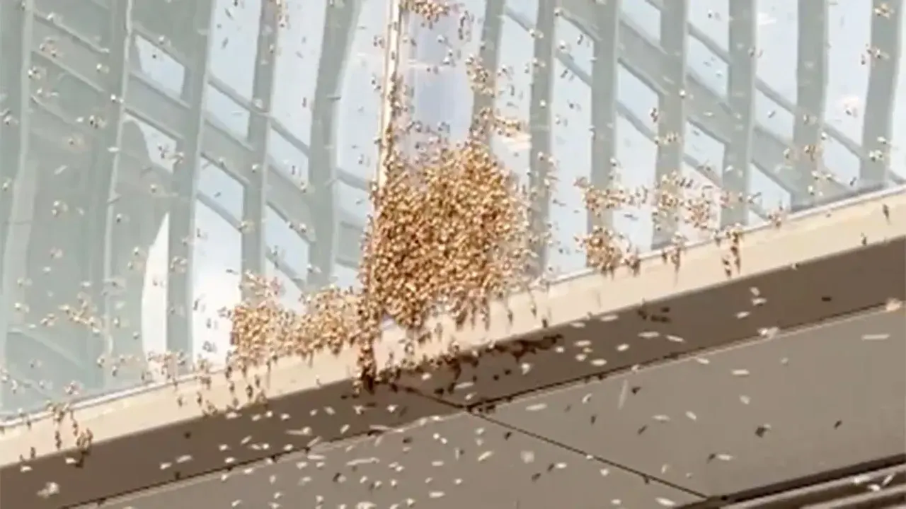 ผึ้งนับพันบินรวมกลุ่ม จนกลายเป็นพายุผึ้ง