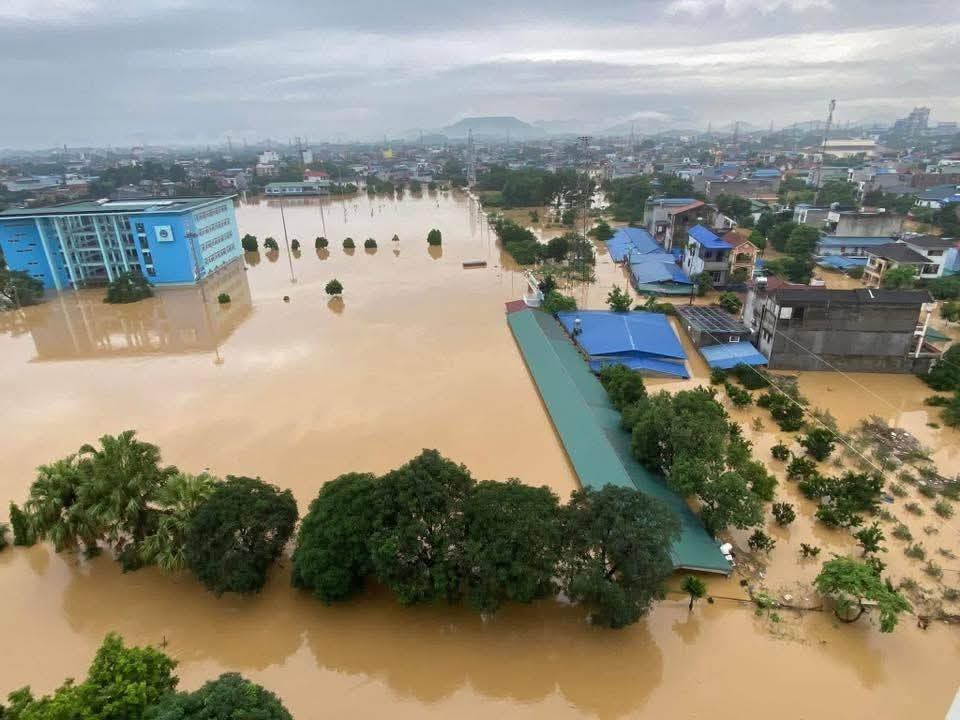 ภาพที่เผยแพร่จากหน้า สำนักงานพรรคคอมมิวนิสต์จังหวัดไทยเหงียน เมื่อเช้าวันนี้ (8 ต.ค.) แสดงให้เห็นพื้นที่บริเวณหน้าประตูสำนักงานถูกน้ำท่วมขังระดับเอว ถนนสายหลักหลายสายถูกตัดขาด การสัญจรเป็นไปด้วยความยากลำบาก ขณะที่เจ้าหน้าที่ท้องถิ่นและกองกำลังทหารเร่งอพยพประชาชนออกจากพื้นที่เสี่ยงอย่างต่อเนื่อง