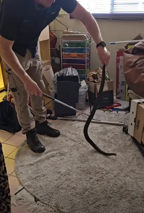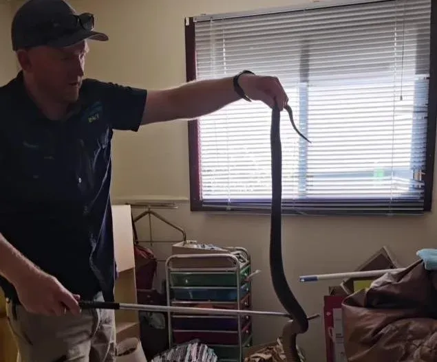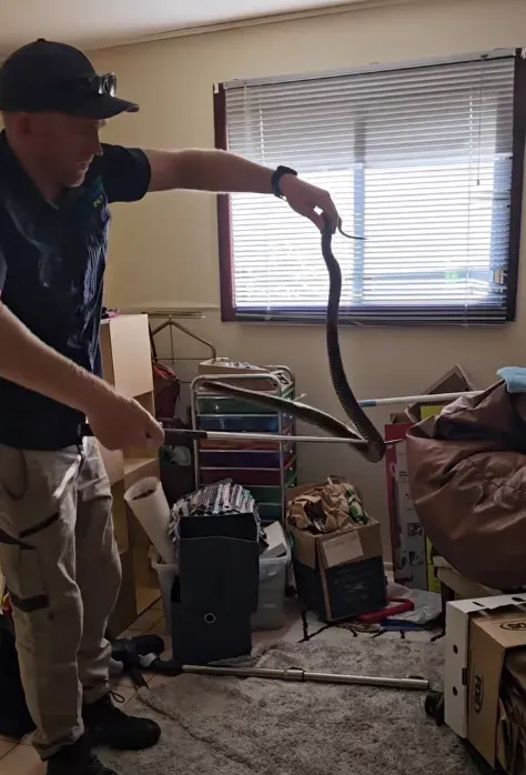 ที่รัฐควีนแลนด์ ในประเทศออสเตรเลีย มีชาวบ้านหญิงคนหนึ่ง ได้แจ้งเจ้าหน้าที่ท้องถิ่น หลังจากที่เธอพบว่าภายในบ้านของเธอ มีงูสีแดงดำซ่อนตัวอยู่ภายในบ้านของเธอ