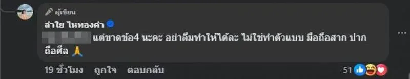 “แต่ขาดข้อ 4 นะคะ อย่าลืมทำให้ได้ละ ไม่ใช่ทำตัวแบบมือถือสาก ปากถือศีล”