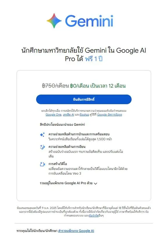 ด่วน! นักศึกษามหาวิทยาลัย ฟังทางนี้! 📣📣 ใช้ Gemini 2.5 Pro และ Google AI Pro ฟรี 1 ปีเต็ม!