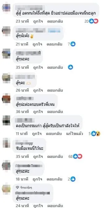 บางคนเขียนข้อความว่า “น้องเจนนี่ผ่านอะไรมาเยอะมากแล้ว ขอให้เข้มแข็งไว้นะ” ขณะที่อีกหลายคอมเมนต์ต่างชื่นชมยิวที่คอยอยู่เคียงข้างภรรยาเสมอ ไม่ว่าจะในวันที่มีชื่อเสียง หรือวันที่ต้องเผชิญกระแสดราม่า