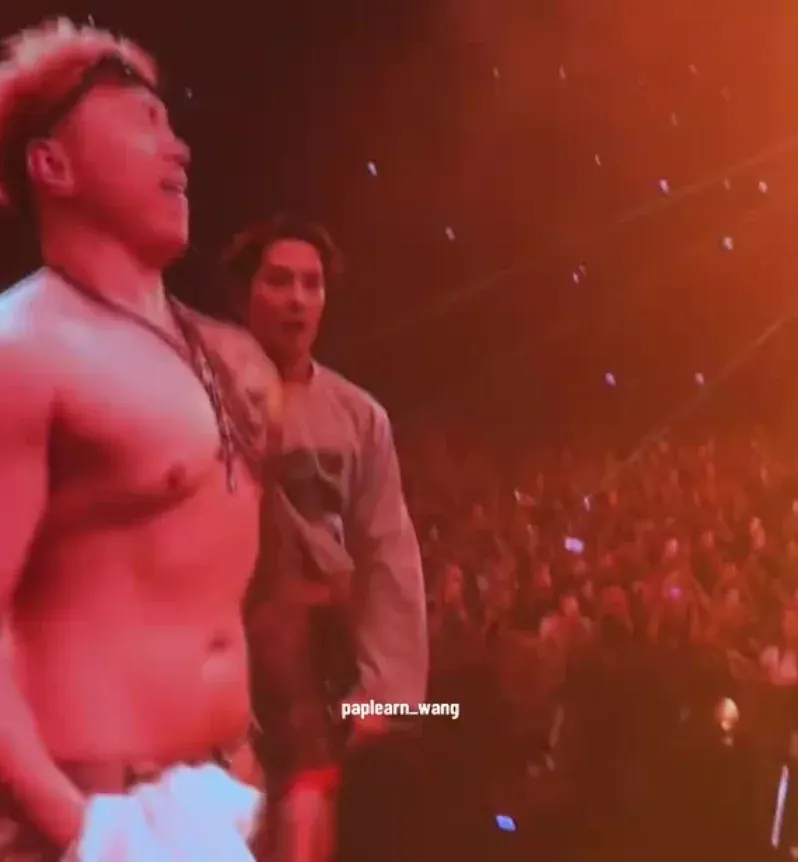 ซึ่งในระหว่างที่ "แจ็คสัน หวัง" กำลังอยู่ในช่วงกระทบไหลเหล่าแฟนคลับ ก็ได้มีเหตุการณ์ที่แฟนคลับชายคนหนึ่ง วิ่งขึ้นไปบนเวที โดยได้ถอดเสื้อ โชว์กล้ามโต และ กอด "แจ็คสัน หวัง" ก่อนจูบแก้มของเขาเข้าอย่างจัง ส่งผลทำให้ "แจ็คสัน หวัง" แสดงออกถึงความสับสนอย่างชัดเจน โดยเขาพยายามดึงเสื้อขึ้นปิดหน้าและถอยห่าง เพื่อหลีกเลี่ยงสถานการณ์ที่อึดอัดนี้ หลังจากนั้น "แจ็คสัน หวัง" ก็ได้ใช้แขนเสื้อเช็ดบริเวณใบหน้าที่ถูกจูบ ซึ่งสะท้อนถึงความรู้สึกไม่สบายใจ และ ทำอะไรไม่ถูกของเขา...
