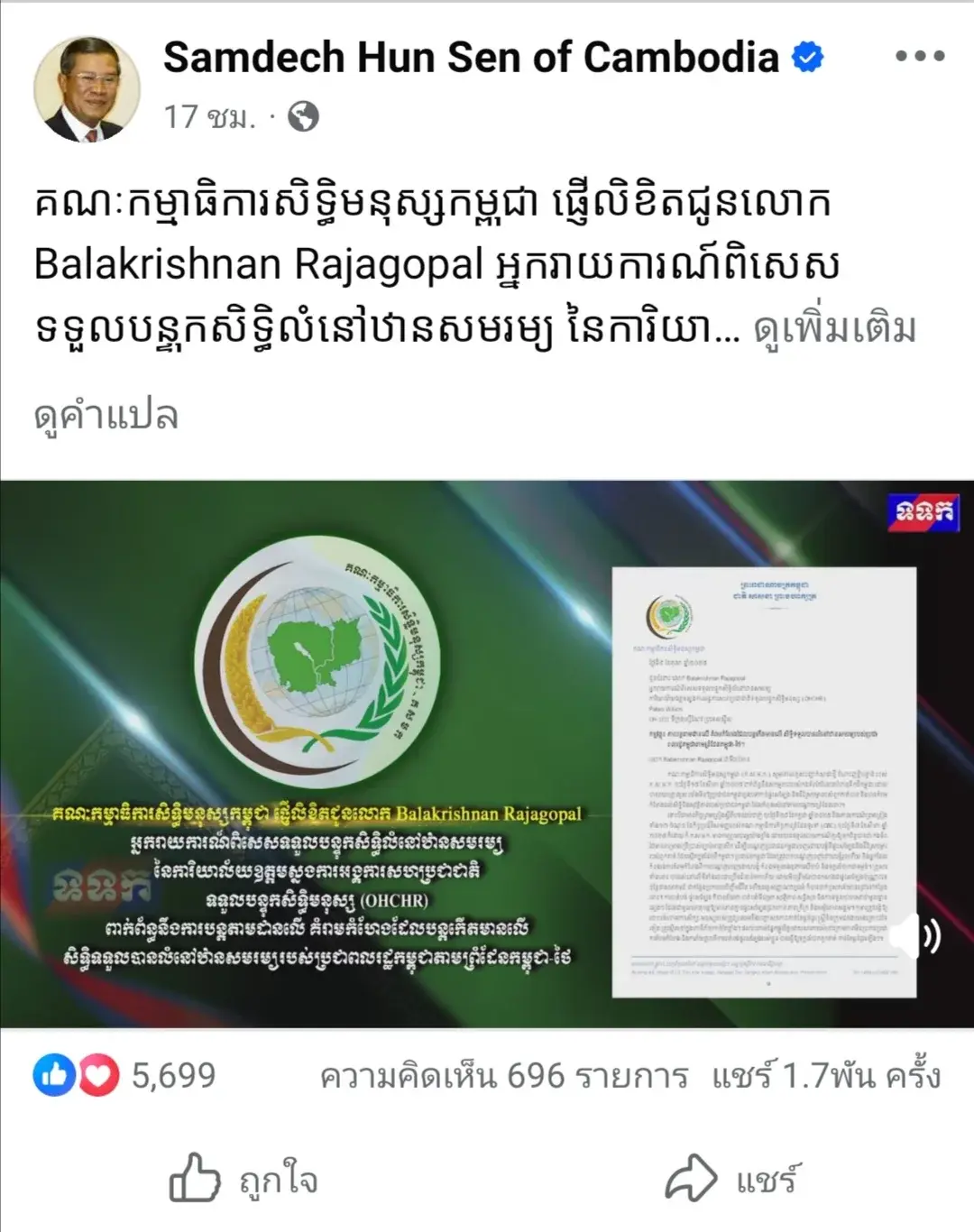 กสม.กัมพูชา ร้อง UN – บอกไทยรุกล้ำชายแดน ละเมิดสิทธิประชาชน