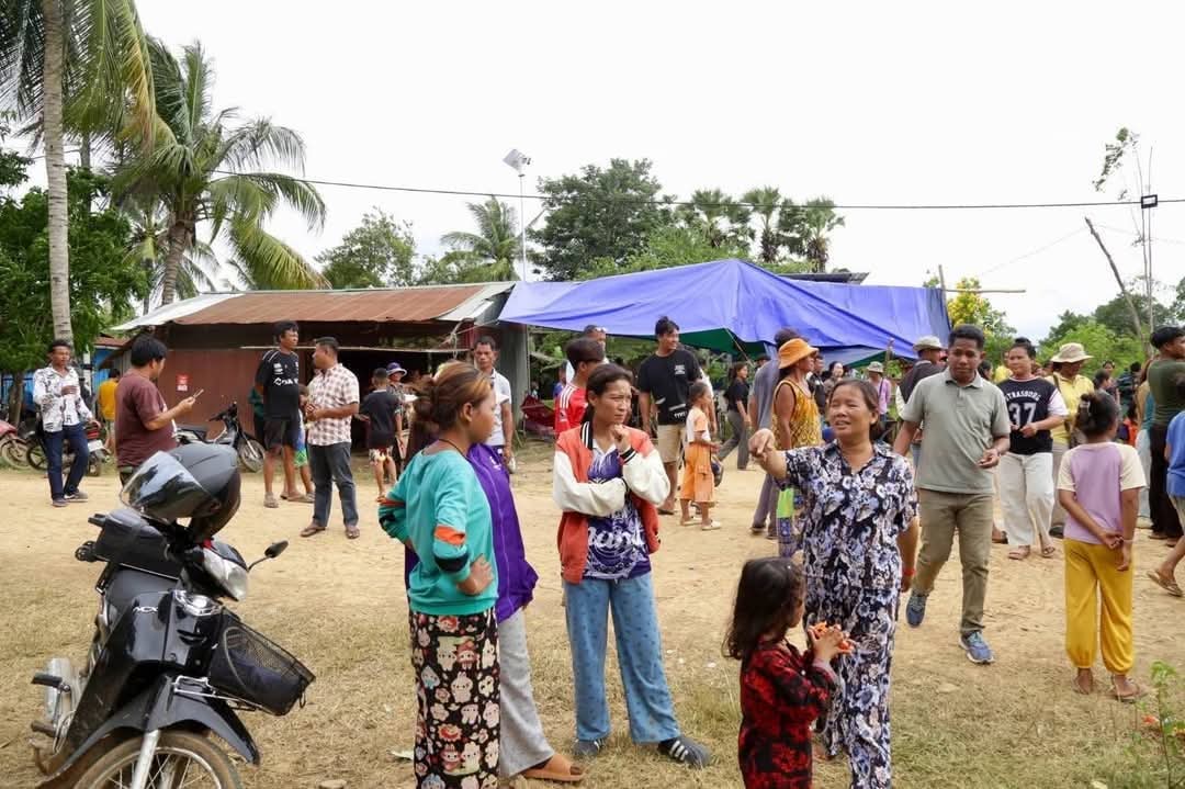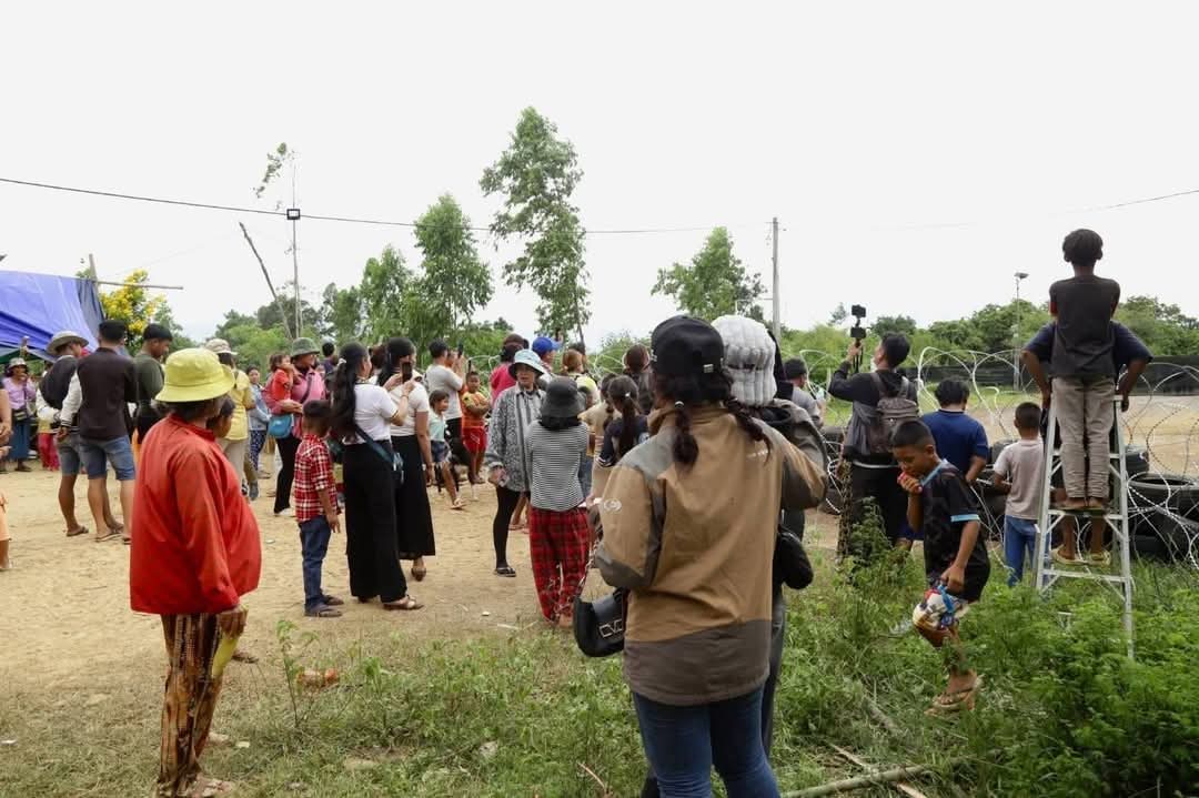 บรรยากาศบ้านเปรยจัน ฝั่งกัมพูชา ตรงข้ามบ้านหนองหญ้าแก้ว ต.โนนหมากมุ่น อ.โคกสูง จ.สระแก้ว มีมวลชนเขมรเริ่มรวมตัวกันแล้ว