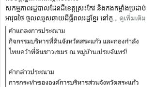 แถลงการณ์กระทรวงมหาดไทย ‘กัมพูชา’ ประณามไทยแผ้วถางที่ดินของประชาชนชาวกัมพูชาใน ‘หมู่บ้านเปรยจัน’ เป็นอาชญากรรมต่อมนุษยชาติ