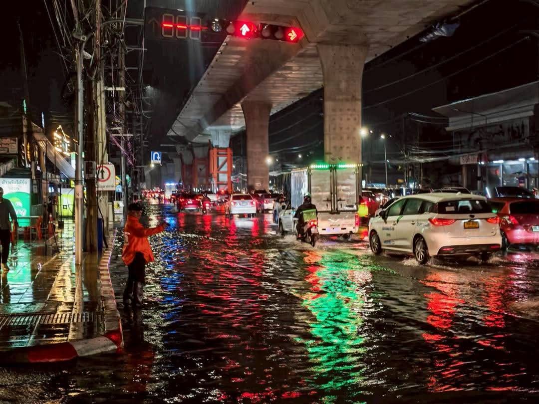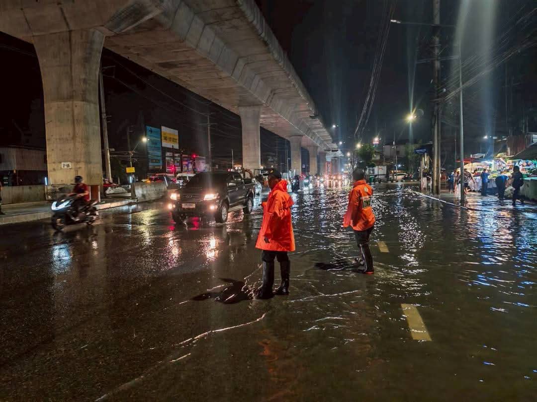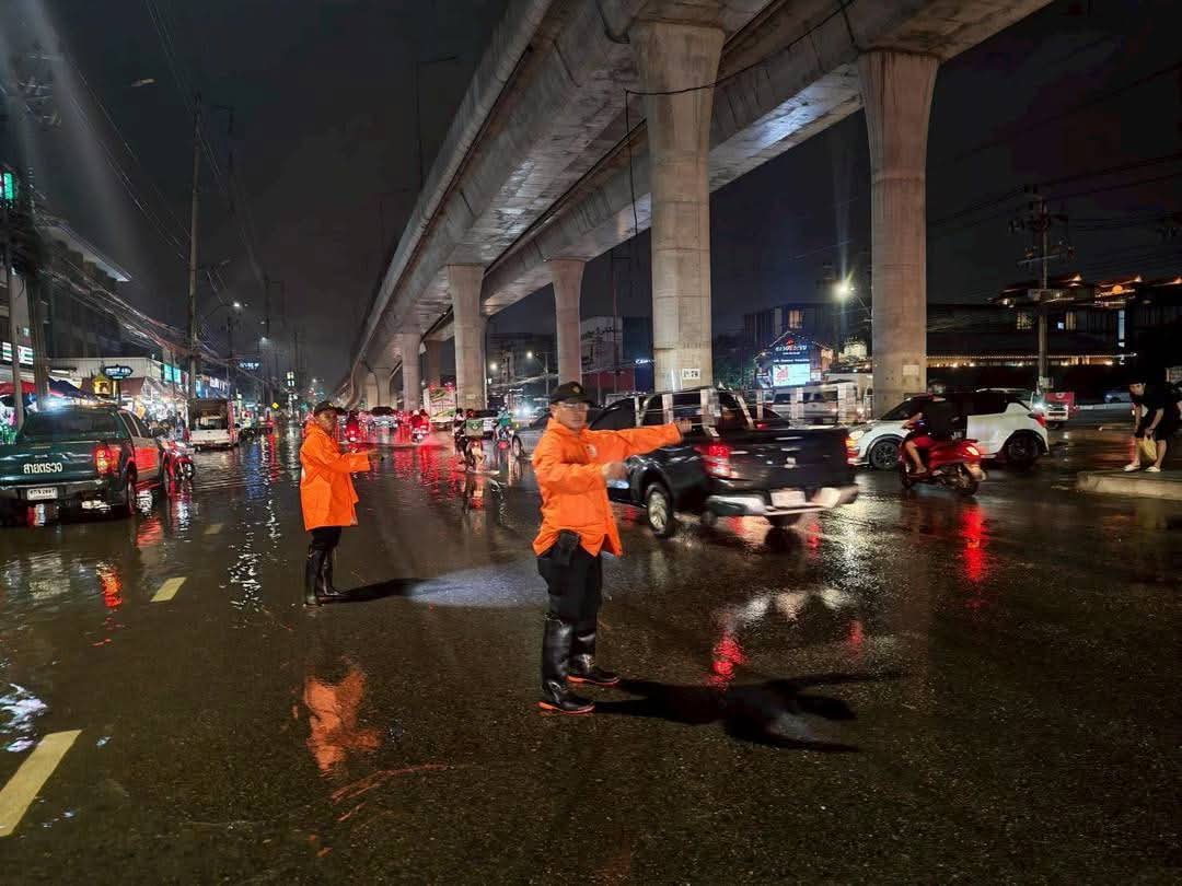 น้ำท่วมขังถนนลาดกระบัง แยกสุขสมาน ระดับน้ำ 10–15 เซนติเมตร เจ้าหน้าที่เร่งระบายต่อเนื่อง