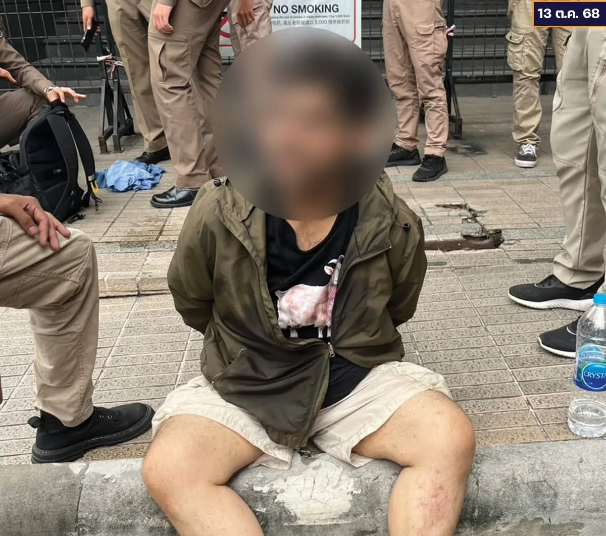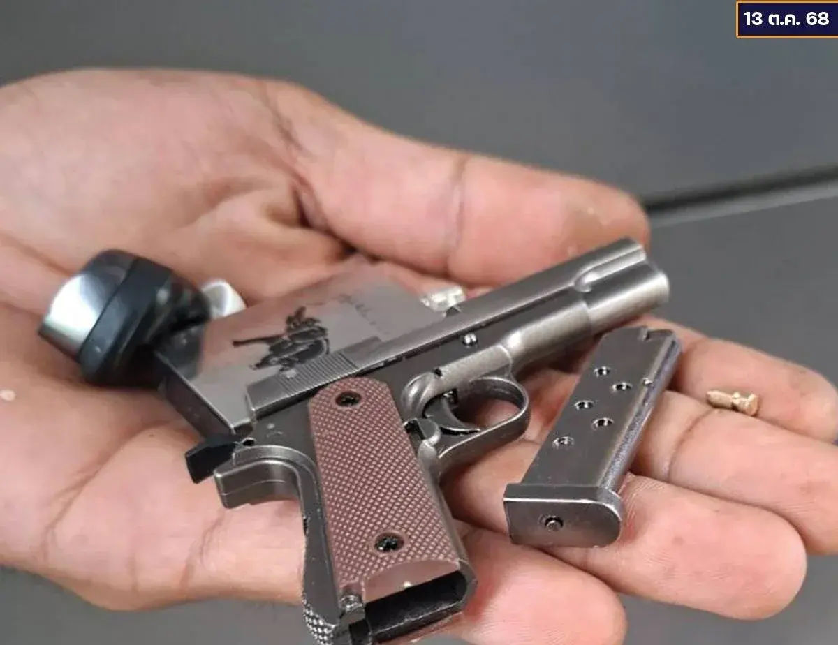 ชี้ข่มขู่ใส่เจ้าหน้าที่ตำรวจและอาสาตำรวจที่อยู่บริเวณนั้น ทั้งนี้เจ้าหน้าที่ตำรวจจึงได้ตัดสินใจควบคุมตัวชายคนนี้อย่างรัดกุมเพื่อป้องกันเหตุไม่ให้เกิดอันตรายต่อประชาชนที่อยู่บริเวณรอบพื้นที่นี้ ต่อมาเจ้าหน้าที่ตำรวจก็ได้ทำการตรวจค้นตัวพกปืนโมเดลของเล่น