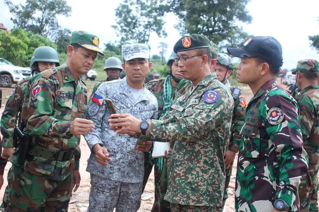 ตามเวลาท้องถิ่นของกัมพูชาเมื่อช่วงเช้าของวันอังคารที่ 14 ตุลาคม 2568 ซึ่งได้มีหน่วยงานภาครัฐของกัมพูชาที่มีส่วนเกี่ยวข้องได้นำพาคณะผู้สังเกตการณ์ชั่วคราว (Interim Observer Team - IOT) นำโดยมาเลเซียเข้าตรวจสอบพื้นที่จุดกระสุนตก ที่ฝ่ายกัมพูชา อ้างว่า“ ฝ่ายไทยมีเจตนาโจมตีพื้นที่พลเรือน ด้วยการใช้เครื่องบินรบทิ้งระเบิด MK-84” ในแถบพื้นที่ หมู่บ้านเสียนเรียง ตำบลมรกต อำเภอจอมกสัน จังหวัดพระวิหาร