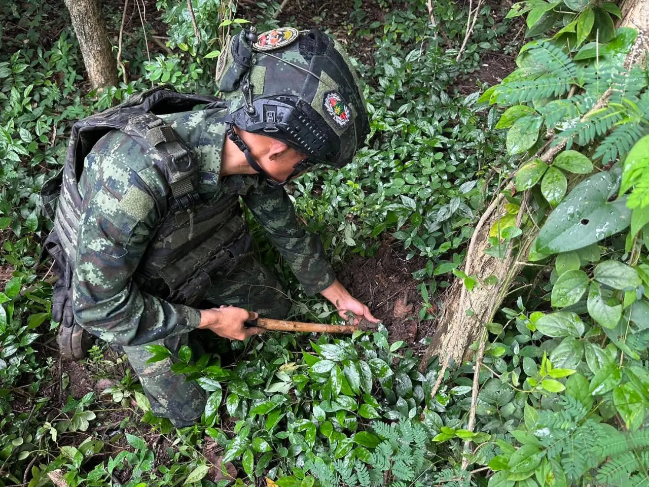 รายงานการปฏิบัติงานเมื่อวันที่ 14 ตุลาคม 2568 ระบุว่า เจ้าหน้าที่ใช้วิธี เดินเท้าสำรวจพื้นที่โดยไม่ใช้เครื่องจักรกลหนักหรือรถถากถาง เนื่องจากเป็นพื้นที่ที่ยังคงมีความเสี่ยงสูงจากการซ่อนทุ่นระเบิด เมื่อเข้าไปตรวจสอบในพื้นที่เป้าหมาย ได้พบ