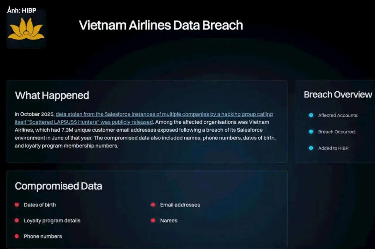 วันนี้ [ตามเวลาท้องถิ่น] สายการบิน "เวียดนาม แอร์ไลน์" ได้ออกมาประกาศด่วนว่า "ข้อมูลลูกค้าบางส่วน ที่ประมวลผลผ่านแพลตฟอร์มบริการลูกค้าออนไลน์ ซึ่งดำเนินการโดยบริษัทเทคโนโลยีระดับโลก อาจถูกเข้าถึงโดยไม่ได้รับอนุญาต เช่น ชื่อ-นามสกุล ที่อยู่อีเมล หมายเลขโทรศัพท์ วันเดือนปีเกิด และหมายเลขสมาชิกสะสมไมล์ แต่ข้อมูลสำคัญอย่าง หมายเลขบัตรเครดิต รายละเอียดการชำระเงิน รหัสผ่าน แผนการเดินทาง หมายเลขหนังสือเดินทาง ยังคงปลอดภัยดีอยู่ ซึ่งตอนนี้ทางระบบไอทีภายใน สามารถทำงานได้ตามปกติ..."