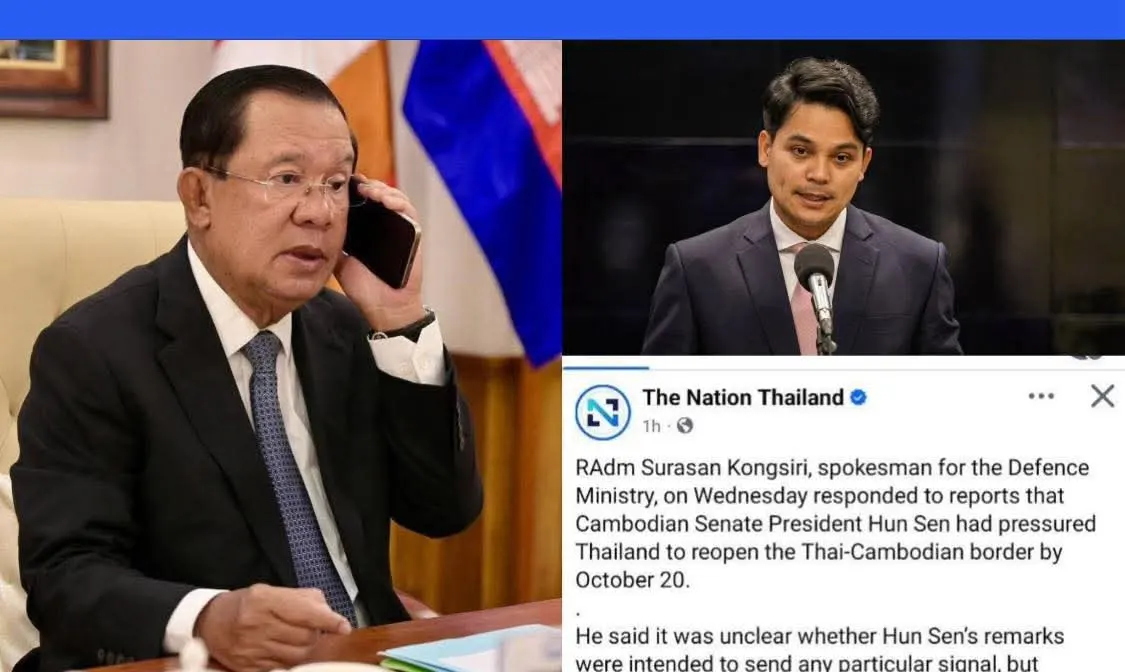 รายงานระบุว่า โฆษกวุฒิสภากัมพูชา นายเจีย ธีรึท ออกแถลงปฏิเสธคำกล่าวอ้างของ พล.ร.ต.สุรสันต์ คงศิริ โฆษกกระทรวงกลาโหมไทย ซึ่งก่อนหน้านี้กล่าวว่า ฮุน เซนได้กดดันให้ไทยเปิดด่านภายในวันที่ 20 ต.ค. โฆษกวุฒิสภาชี้แจงว่าไม่มีการร้องขอเช่นนั้น และยกข้อความในโพสต์เฟซบุ๊กของฮุน เซนเมื่อ 23 ก.ย. 2025 ที่ระบุว่า เมื่ิอไทยเป็นฝ่ายปิดเขา (กัมพูชา) ก็ไม่จำเป็นต้องไปเจรจาขอ และถ้าไทยเปิด ฝ่ายกัมพูชาจะตามเปิดภายในไม่เกิน 5 ชั่วโมง — พร้อมยืนยันว่า “กัมพูชาก็ไม่ตาย” หากไทยปิดต่อไปอีก 100 ปี.