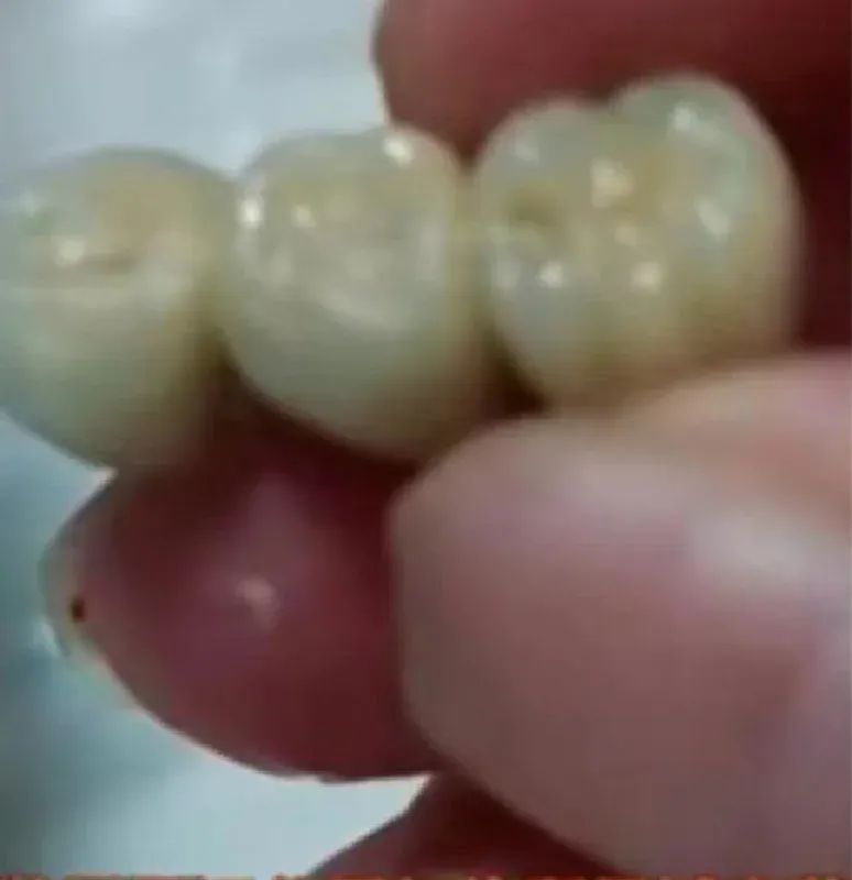 หญิงจีนพบฟันปลอม 3 ซี่ ขณะกินไส้กรอก