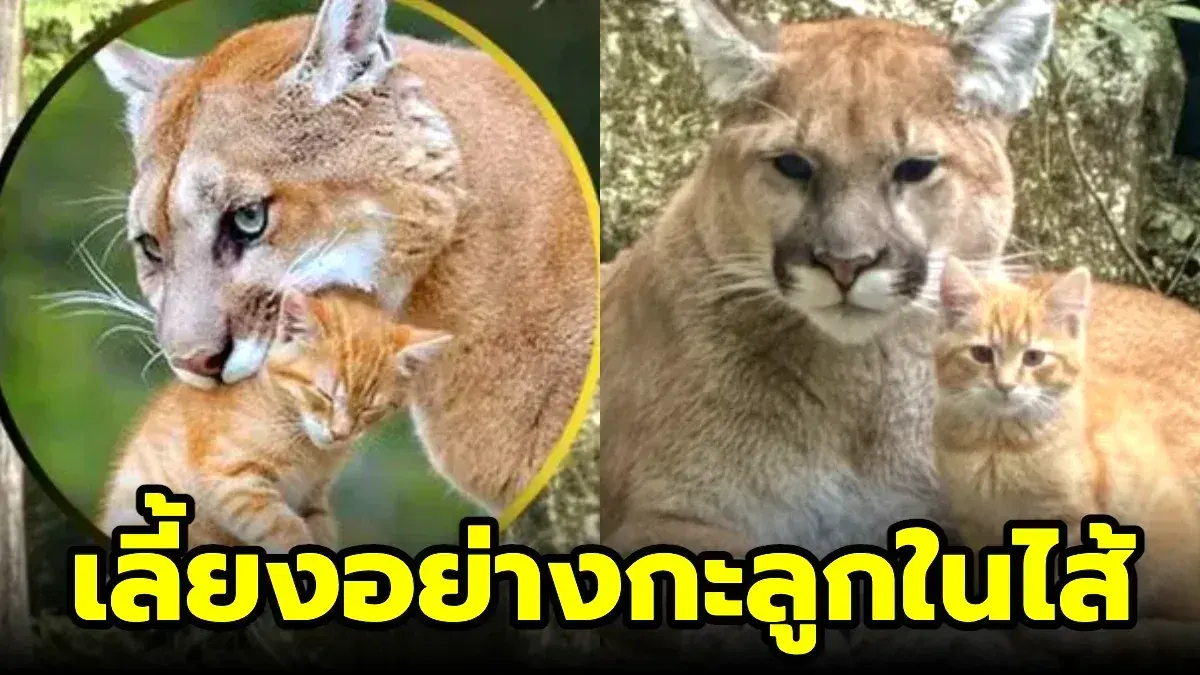 ภาพไวรัล สิงโตภูเขาเลี้ยงแมวส้ม? หรือภาพปลอม AI สร้าง (เช็กความจริง!)