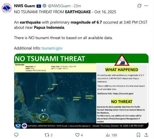 ขอบคุณเนื้อหา และสามารถติดตามเพิ่มเติมได้ที่: (ภาพ/เผยแพร่ซ้ำจาก X, @NWSGuam)
