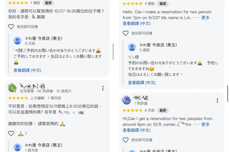 สิ่งที่น่าประหลาดใจคือ รีวิว "ห้าดาว" จำนวนมากที่ปรากฏนั้น ไม่ได้มีเนื้อหาเพื่อชื่นชมรสชาติอาหาร หรือบรรยากาศของร้านแต่อย่างใด แต่กลับใช้ช่องทางนี้เป็น "ช่องทางในการขอจองที่นั่ง" ซึ่งเต็มไปด้วยข้อความลักษณะคล้ายกับการส่งคำขอหรือคำสั่งจองโต๊ะ เช่น ระบุจำนวนคน วันที่ และเวลาที่ต้องการเข้าใช้บริการ