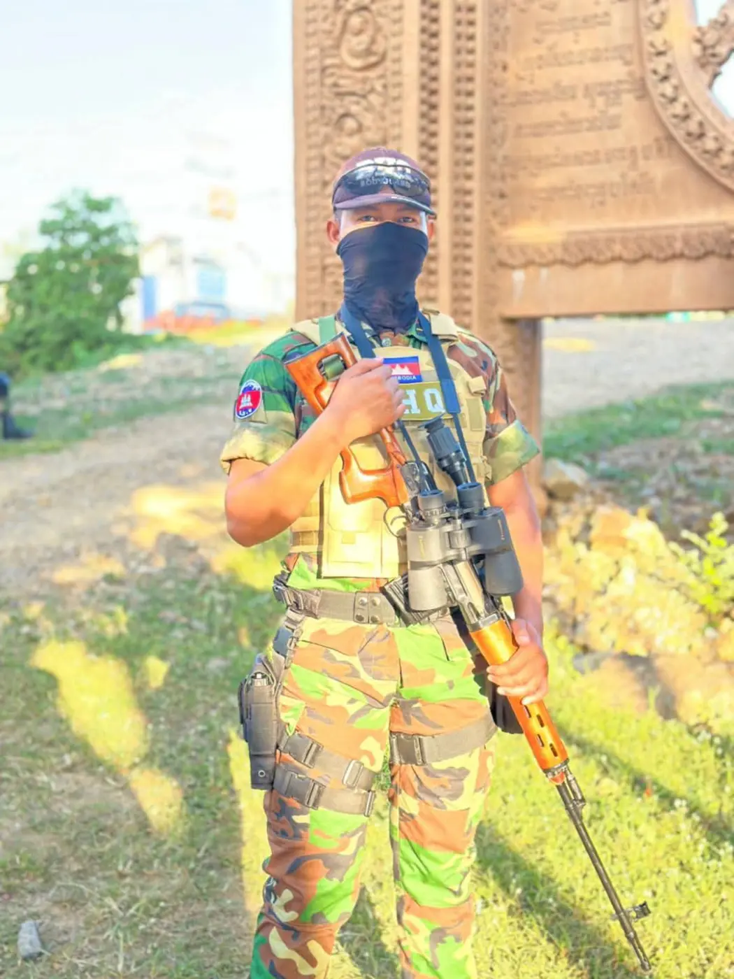 วันที่ 18 ตุลาคม 2568 โลกออนไลน์ประเทศกัมพูชาเกิดกระแสฮือฮา หลังเพจข่าวชื่อดัง BHQ Cambodia เผยแพร่ภาพชายแต่งกายคล้ายชุดทหาร พร้อมอาวุธปืนสไนเปอร์ โดยระบุข้อความว่า