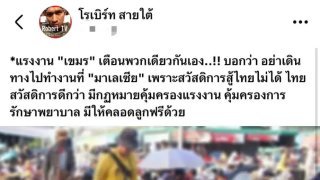 โรเบิร์ท สายใต้ เตือนแรงงานเขมรอย่าเดินทางไปทำงานที่มาเลเซียเพราะ สวัสดิการสู้ไทยไม่ได้