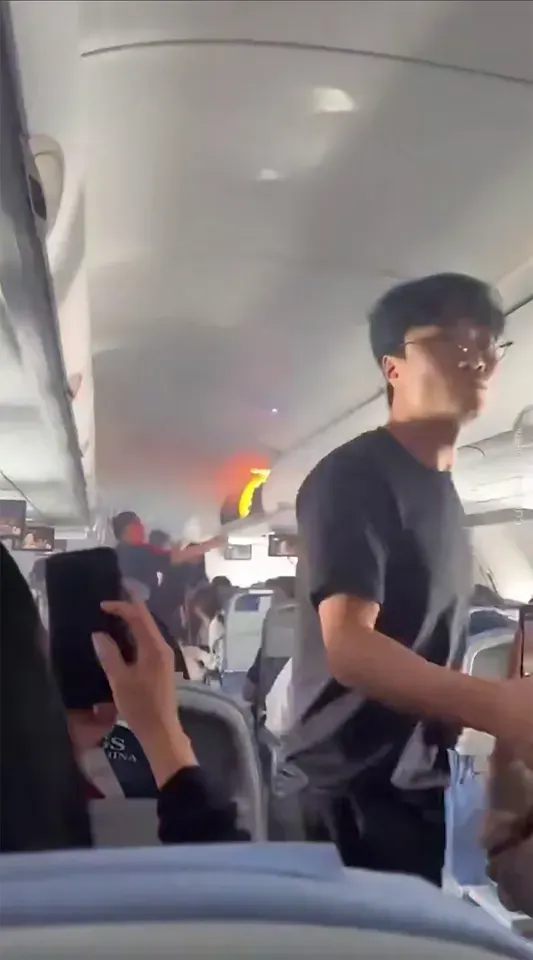 ผู้โดยสารชาวเกาหลีบนเครื่อง ได้ยินเสียงตะโกนว่า "เร็วเข้า เร็วเข้า!" ในขณะที่พนักงานพยายามดับไฟ