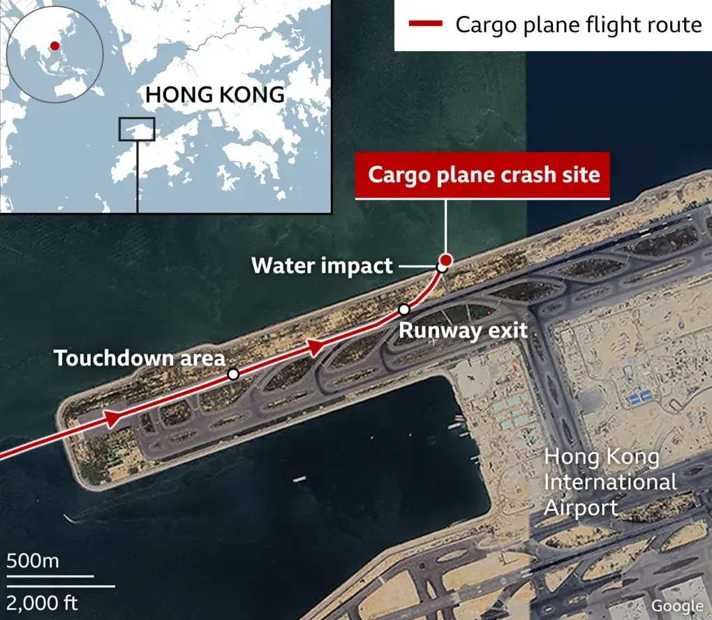 ดับ 2 หลังเกิดเหตุเครื่องบินส่งสินค้า ไถลออกนอกรันเวย์ฮ่องกงจนตกน้ำ