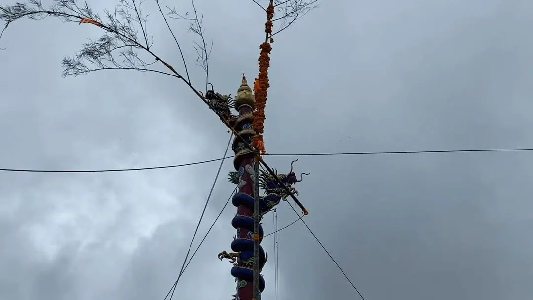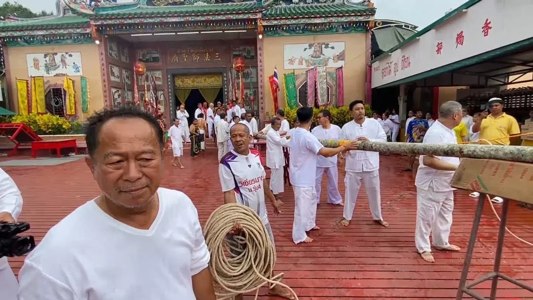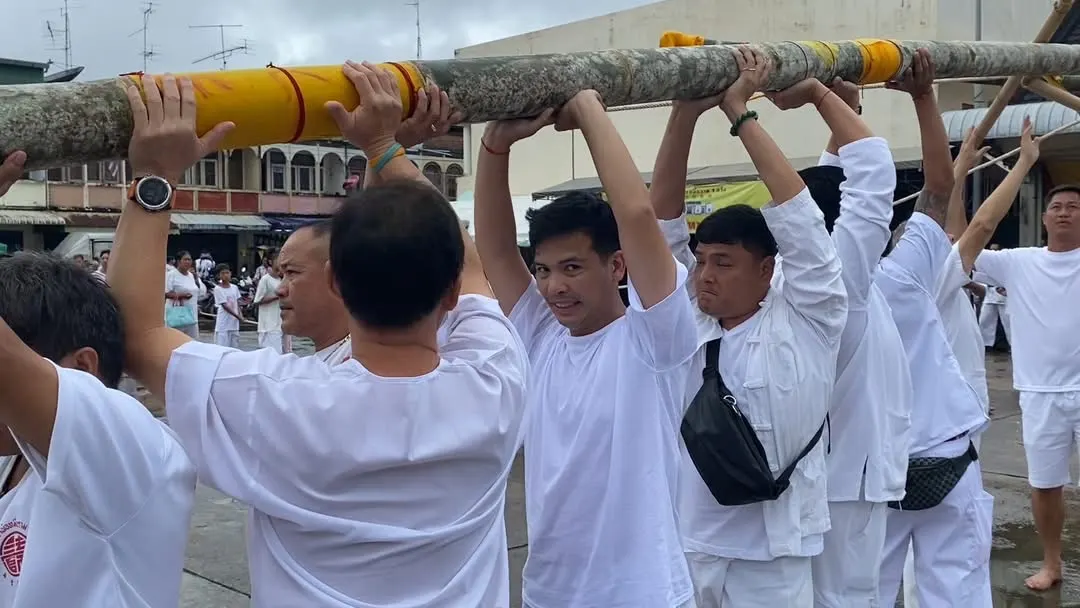 ศาลเจ้าพ่อหมื่นรามยกเสา”เต็งกอ”พร้อมกันประกาศจัดงานกินเจประจำปี 2568