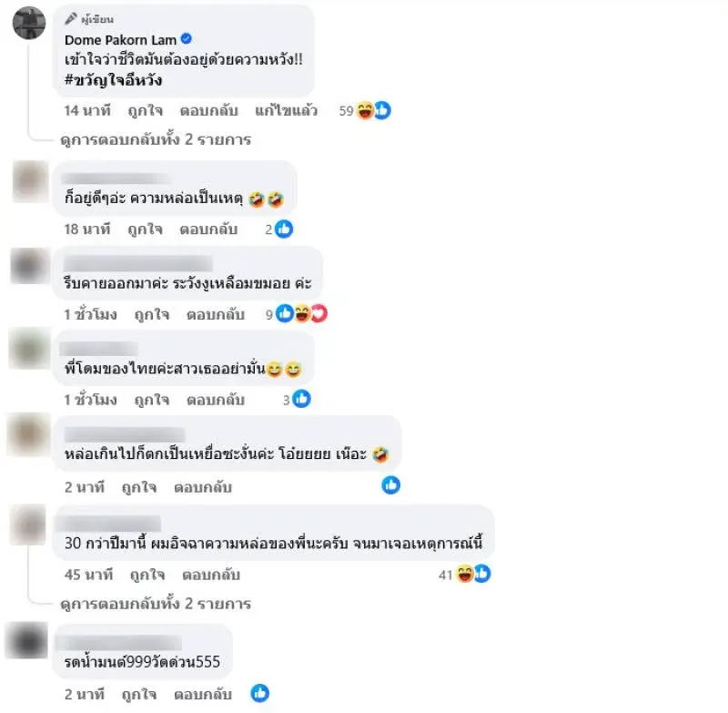 โพสต์นี้กลายเป็นไวรัลภายในเวลาไม่กี่ชั่วโมง แฟน ๆ แห่คอมเมนต์ทั้งขำ ทั้งให้กำลังใจ ทั้งบางส่วนก็แอบแซวว่า “พี่โดมก็ยังหล่อจนโดนเข้าใจผิดได้ตลอดเวลา”