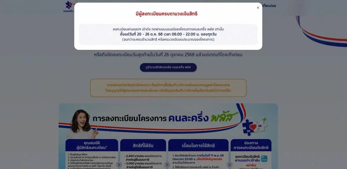 โครงการ คนละครึ่งพลัส หนึ่งในมาตรการกระตุ้นเศรษฐกิจของรัฐบาลไทย ยังคงได้รับความสนใจอย่างมากจากประชาชนและผู้ประกอบการทั่วประเทศ หลังจากเปิดให้ลงทะเบียนเข้าร่วมโครงการผ่าน แอปพลิเคชัน “เป๋าตัง” ตั้งแต่วันที่ 20 ตุลาคม 2568 เป็นต้นมา