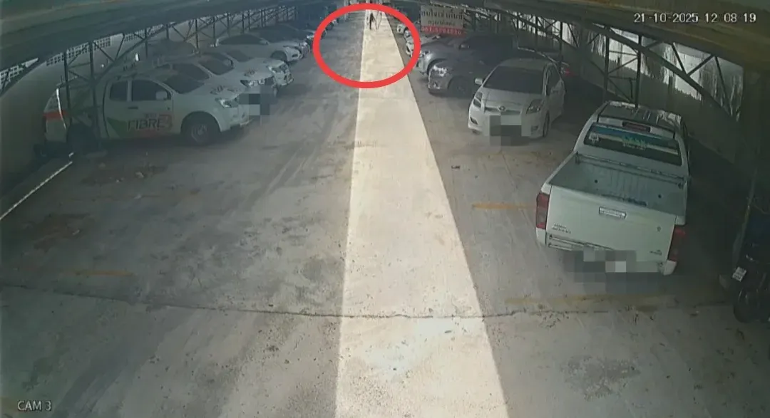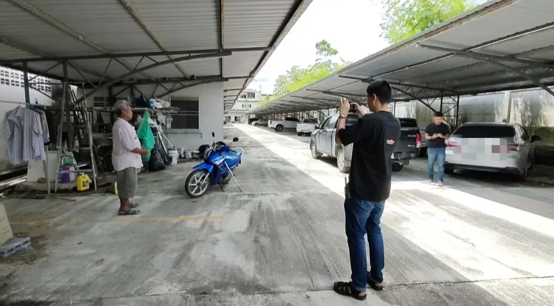 เมื่อถึงที่เกิดเหตุพบนายเจียม อายุ 50 ปี ผู้เสียหาย ยืนรอตำรวจในที่เกิดเหตุ ก่อนให้การวว่า ตนเป็นคนงานโครงการดังกล่าว ทำหน้าที่เป็นช่างซ่อมแซม โดยก่อนเกิดเหตุช่วงเวลา 12.07 น.มีชายอายุ 35 – 40 ปี รูปร่างผอม สวมเสื้อแจ็คเก็ตทหาร นุ่งกางเกงยีนส์สีดำ ไม่สวมรองเท้า บุกเข้ามาบริเวณลานจอดรถ ตอนนั้นไม่ได้เอะใจอะไร เพราะสอบถามชายคนดังกล่าว ว่าเอาบันไดอลูมิเนียมไปไหน แต่ชายคนดังกล่าวกลับอ้างว่า รับจ้างตัดหญ้าริมกำแพง ต้องใช้บันได กระทั้งรู้สึกเอะใจ เพราะนายจ้างไม่ได้แจ้งว่าจ้างคนงานมาตัดหญ้าริมกำแพง จึงรีบตามชายดังกล่าวไป แต่ไม่ทัน ชายคนดังกล่าวเอาบันไดพาดกำแพงปีนหนีลัดเลาะไปในป่ากล้วย หลังโครงการ จึงมั่นใจว่าเป็นคนร้ายแน่นอน จึงรีบแจ้งตำรวจตรวจสอบติดตามจับกุมคนก่อเหตุ