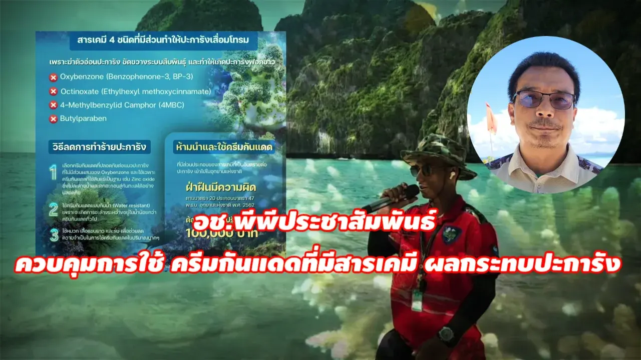 อช.พีพีคุมเข้มอ่าวมาหยา! ห้ามนทท.ลงเล่นน้ำเด็ดขาด ป้องกันปะการังถูกทำลายจากครีมกันแดด พร้อมเร่งประชาสัมพันธ์งดใช้ครีมกันแดดที่มีผลกระทบต่อปะการัง หากพบฝ่าฝืนมีโทษปรับสูงสุด 1 แสนบาท