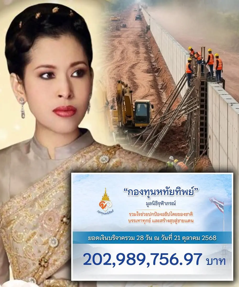 ยอดบริจาคทะลุ 202 ล้านบาทแล้ว สำหรับ “กองทุนหทัยทิพย์” กองทุนอันเกิดจากพระราชดำริของ สมเด็จพระเจ้าลูกเธอ เจ้าฟ้าจุฬาภรณ์วลัยลักษณ์ อัครราชกุมารี เพื่อสนับสนุนการก่อสร้าง “กำแพงถาวรแนวชายแดน” ซึ่งมีจุดมุ่งหมายเพื่อปกป้องผืนแผ่นดินไทยและดูแลความปลอดภัยของประชาชน
