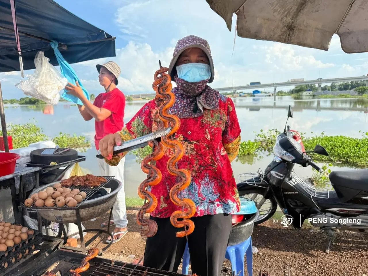 ขณะนี้ปัญหาน้ำท่วมในหลายพื้นที่ของกัมพูชาทำให้สัตว์เลื้อยคลานจำนวนหลายชนิดรวมไปถึงงูต้องหนีขึ้นที่สูงแต่สำหรับชาวบ้านที่กำลังประสบปัญหาน้ำท่วมอยู่ในขณะนี้เรียกได้ว่าเป็นโอกาสทองสำหรับการจับงูมาปรุงอาหารเพื่อสร้างรายได้ให้กับตัวเองซึ่งล่าสุด