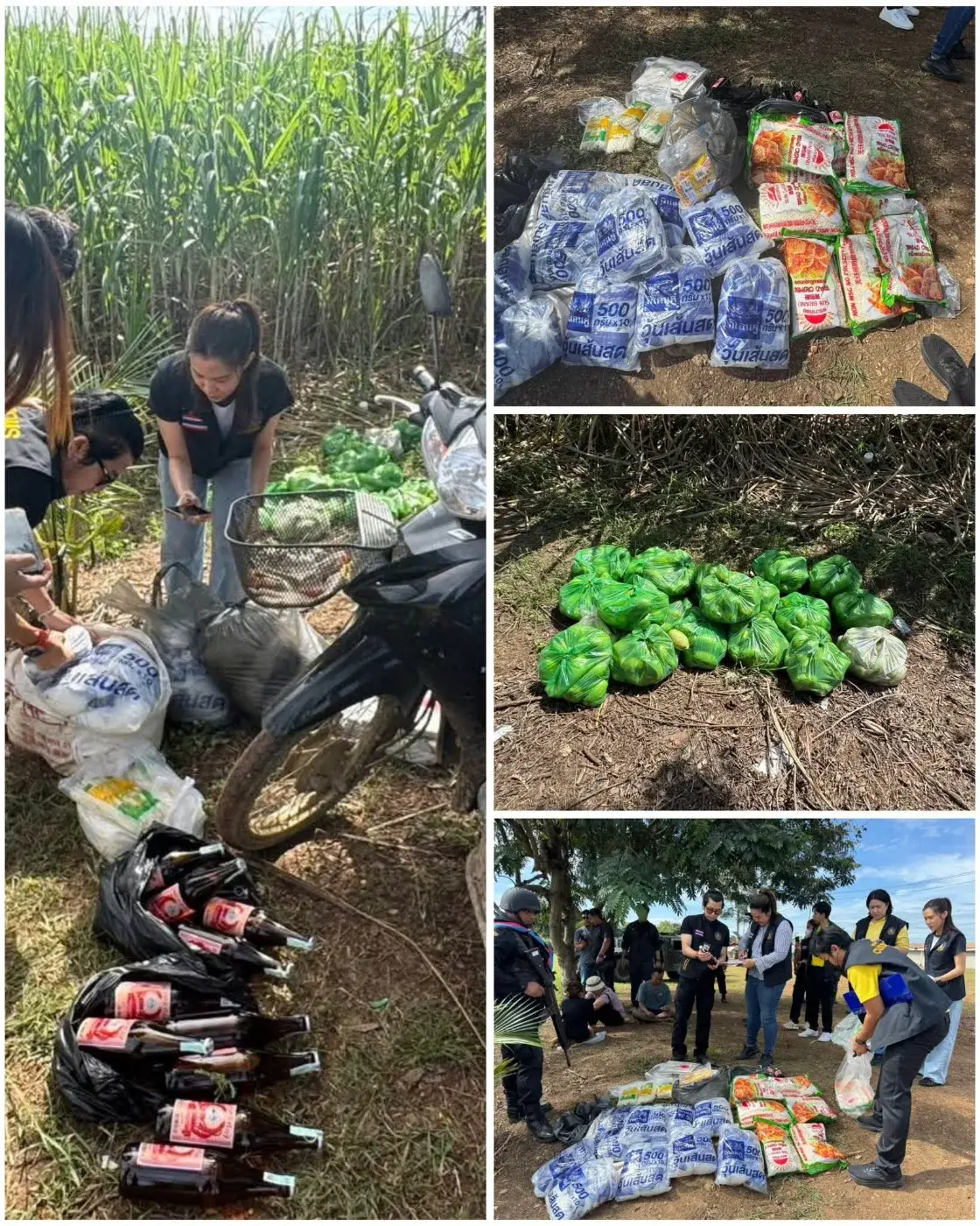 ของกลางที่ตรวจยึดได้ เป็นสินค้าไทยหลายรายการ เช่น สุราขาว 35 ดีกรีจำนวน 12 ขวด เส้นจันทร์สด เกร็ดขนมปังชุบแป้งทอด วุ้นเส้นสด ผงฟู รวมแล้วนับหลายร้อยหน่วย และมะม่วงแก้วขมิ้นอีกกว่า 150 กิโลกรัม